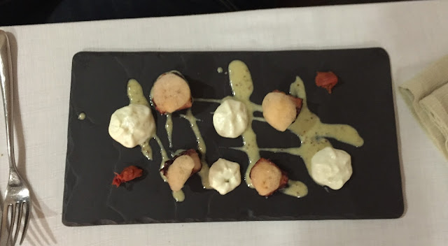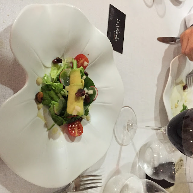 Burada iki tür tadım menüsü oluyor. Birincisi 10 farklı taddan oluşan geniş menü (fiyatı 55 euro).Bu geniş menüde, 2 adet giriş tabağı, 6 adet ana yemek, 2 adet de tatlı bulunuyor. Porsiyonlar tadım menüsü standardlarında olması gerektiği gibi aşırı küçük değiller ama! Ben mesela 6.dan sonra sadece tadına bakıp bırakır hale gelmiştim. 🙂 Vidalciğim acımıyor, Latin usulü bol bol koyuyor yemekleri. Bu menüyü seçecekseniz herşeyi bitirerek ilerlemeyin, tatlıya yer kalmaz benden uyarması. İkincisi 5 farklı taddan (30 euro) oluşan mini-tadım menüsü, daha kompakt halde; 1 giriş, 3 ana yemek, 1 tatlı şeklinde. Her iki menüye de içecekler dahil değil. Ancak bir bardak şarabın 3 euro’dan başladığı ortamda içecek fiyatları benim gibi İstanbulluya aşırı uygun geldi.